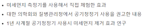 공기청정기의 미세먼지 제거 효과에 대한 증거