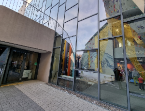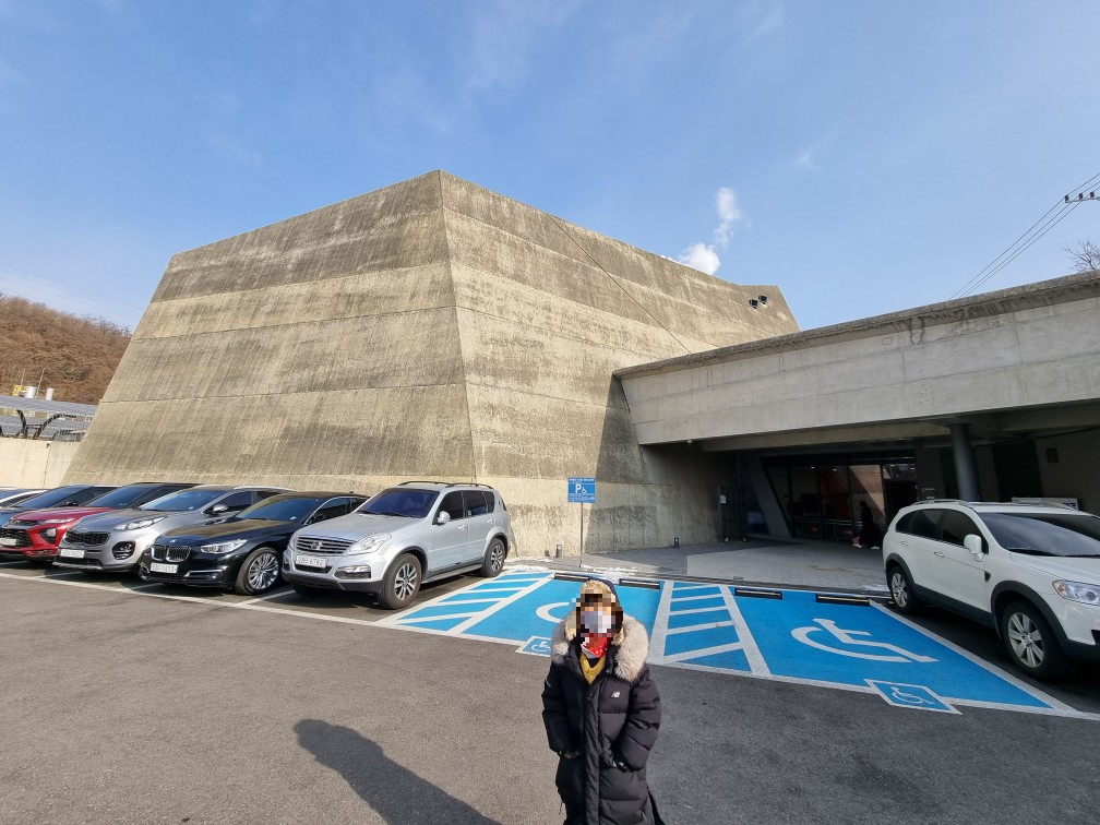 예약 시 유의 사항에 체험 10분 전에 도착하라고 적혀있어서 여유 있게 갔습니다. 하지만 주차장은 여유 있지 않았습니다. 마지막 남은 한자리에 서둘러 주차를 했습니다. 주차료는 체험을 하는 경우 3시간 무료주차 가능합니다. 그렇지 않은 경우의 주차요금은 5분당 150원입니다. 한 시간이면 1800원입니다. 또한 일주차는 평일 5,000원, 주말 10,000원입니다. 입장을 해봅니다. 건물 외관에 있는 야외 클라이밍장이 눈길을 끕니다.
