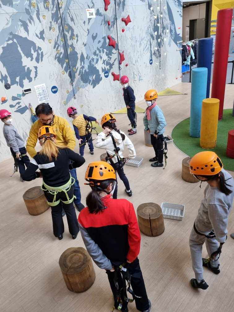 입장하고 본인의 평소 운동화 사이즈보다 10cm 정도 큰 암벽화를 선택해서 신습니다. 암벽화는 수업이 끝난 후 바로바로 소독기에 넣어서 소독을 했습니다. 참고로 모든 체험은 취학 아동부터 체험이 가능합니다. 미취학은 체험이 불가능합니다. 올해 2023년은 2016년생부터 참여가 가능합니다.