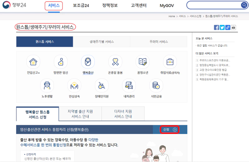 한번에 모두 신청할 수 있는 '행복출산 원스톱 서비스'